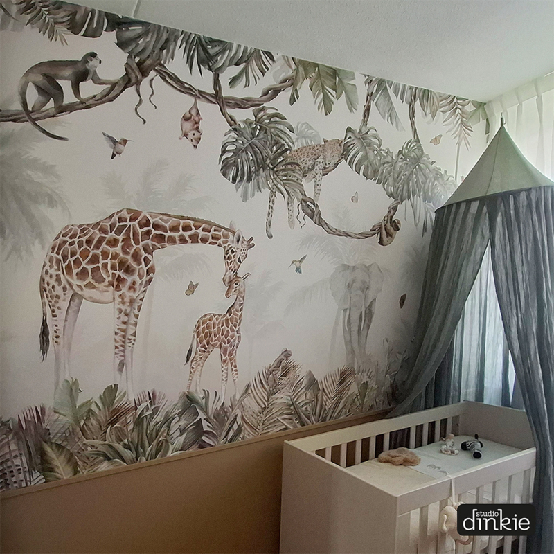 Ben jij op zoek naar leuk jungle behang voor jouw baby- of kinderkamer? Niets is leuker dan je creativiteit de vrije loop te laten en helemaal los te gaan op een mooi behangen muur. Met ons behang heb je in een handomdraai je saaie kamer omgetoverd tot een mooie, sfeervolle kinderkamer.